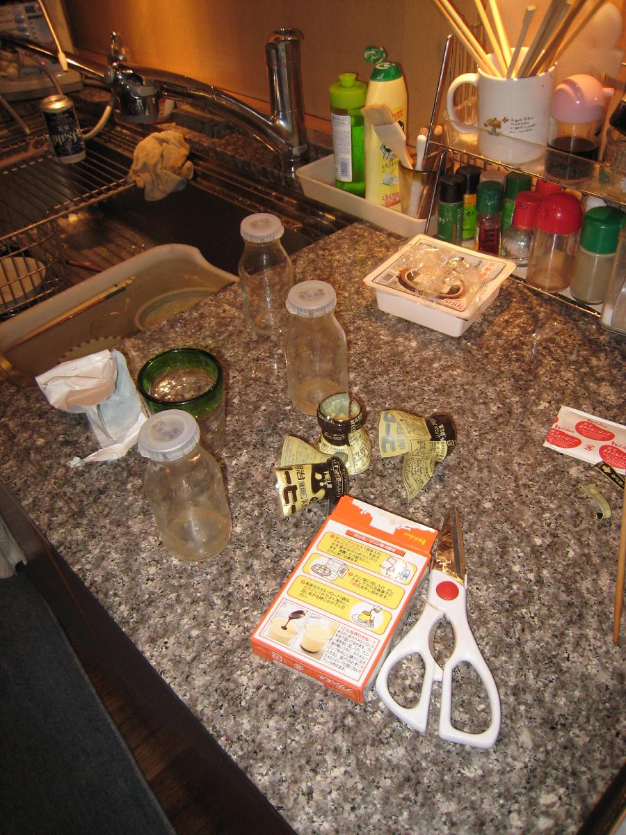 …早急に牛乳瓶についていたビニールの包装を見る